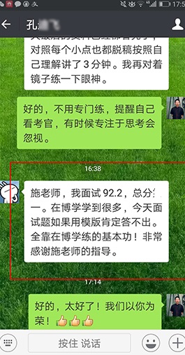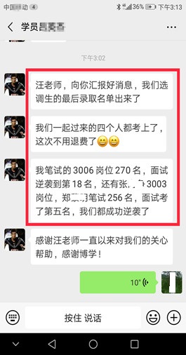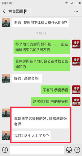 面試上岸有保障(指最終報考單位錄取)。 歷年來,事業(yè)單位面試培訓班上岸率有保障,均有據(jù)可查。博學面試課程體系無論是課程的深度、廣度、實戰(zhàn)性還是歷屆學員口碑和美譽度都遠高于其他同類輔導機構。面試狀元、最后一名反超成功的比比皆是。 |