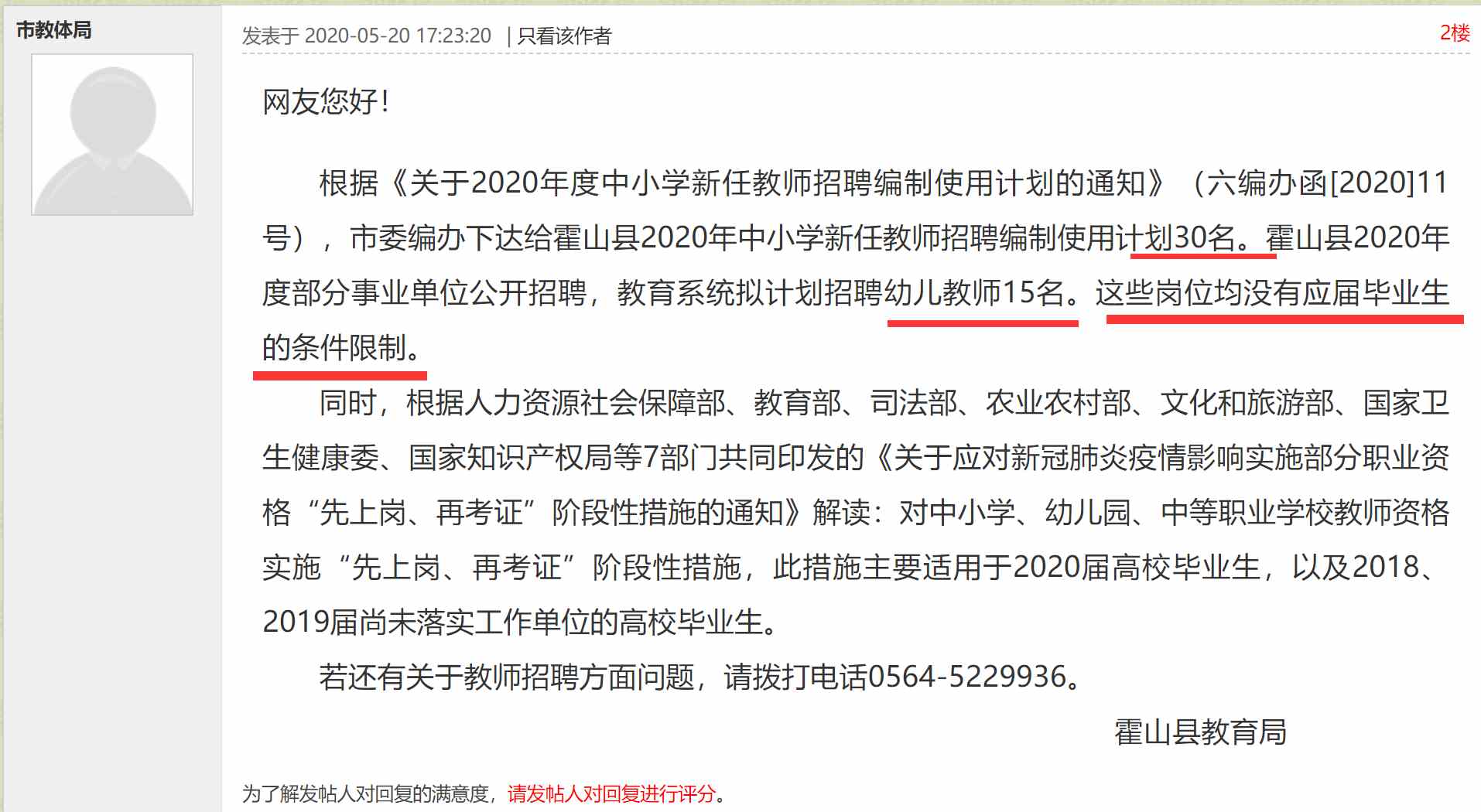 霍山縣教育局回復(fù):