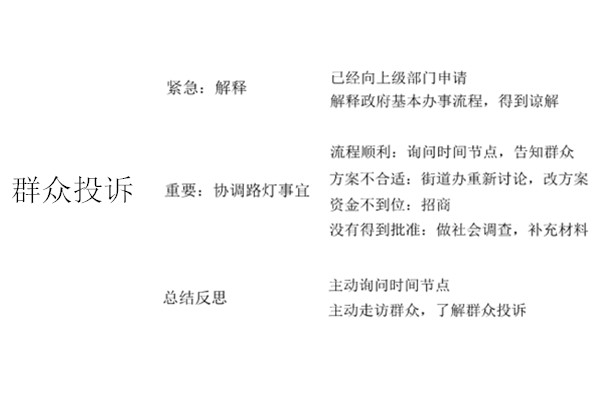 本題側(cè)重考察考生解決問題的能力。考生在審題的過程中要對事件的輕重緩急和已經(jīng)給出的限定條件進行明確。在解決問題過程要做到對策可行性強,并進行逐一解決。