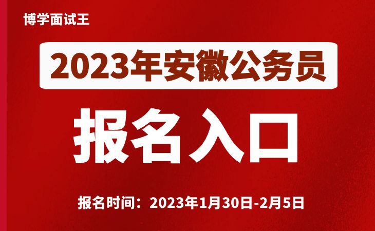 2023安徽公務(wù)員考試公告于1月18日發(fā)布,共招錄7256人。本次報(bào)名采取網(wǎng)上報(bào)名的方式進(jìn)行(涉密等特殊職位除外)。報(bào)名時(shí)間為2023年1月30日9:00至2月5日23:00。報(bào)名網(wǎng)站為安徽省人事考試網(wǎng)(www.apta.gov.cn)。安徽博學(xué)教育為各位考生帶來(lái)安徽公務(wù)員考試報(bào)名入口,方便大家進(jìn)入。