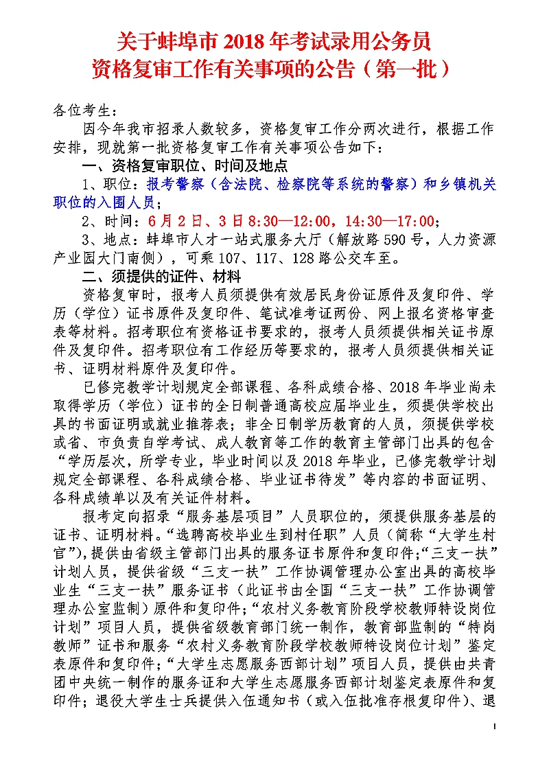 埠市2018年考試錄用公務(wù)員資格復(fù)審工作有關(guān)事項(xiàng)的公告(第一批)