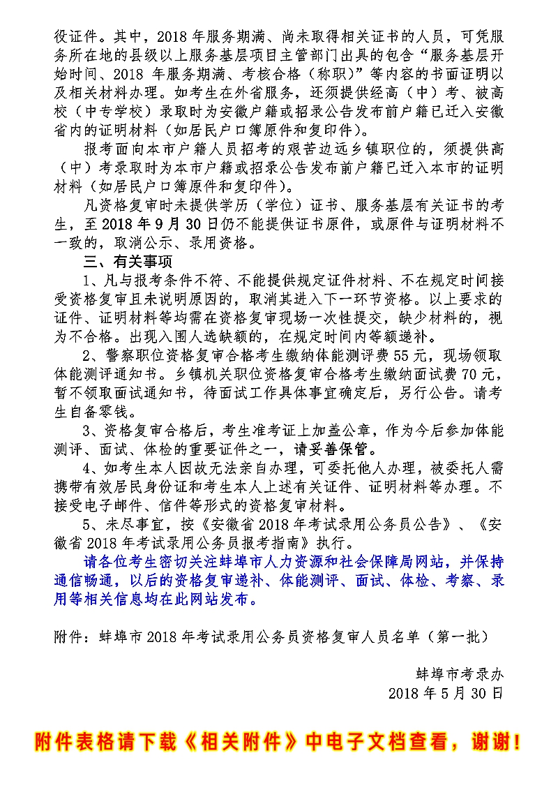 點(diǎn)擊下載:蚌埠市2018年考試錄用公務(wù)員資格復(fù)審人員名單(第一批)