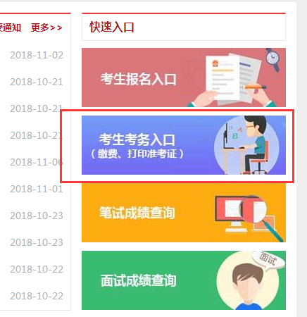 報考人員登錄考錄專題網站,選擇“考生考務入口”(或報名確認及準考證打印網址),進入報名確認及準考證打印系統登錄頁面,通過報名序號和身份證號即可登錄。