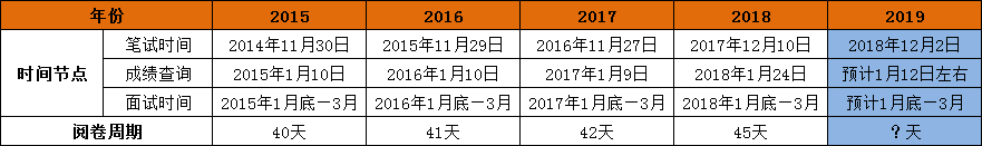 2019國家公務(wù)員考試筆試已于12月2日結(jié)束,那么,2019國考成績什么時(shí)候出呢?按照以往國考成績查詢時(shí)間預(yù)測(cè)2019國考成績查詢時(shí)間將在2019年1月中下旬左右,在此,小編附上歷年國家公務(wù)員考試成績查詢時(shí)間,希望能幫助各位考生做好面試備考的準(zhǔn)備。