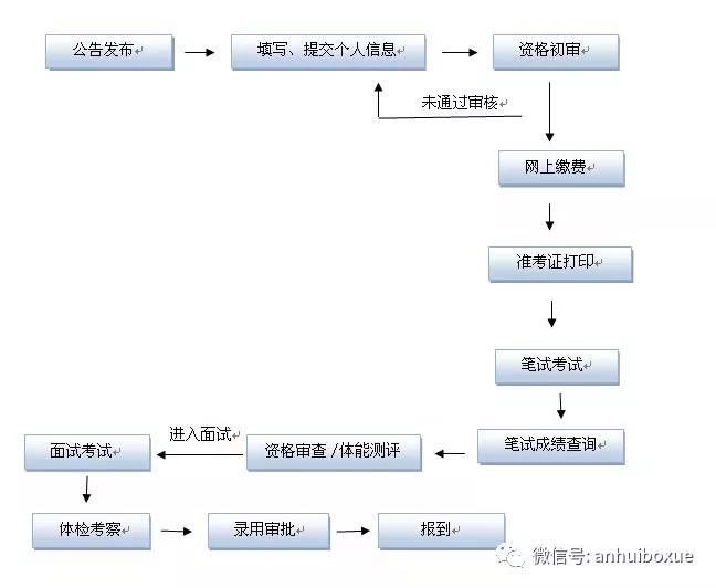 下面給還不了解安徽省考的考生簡(jiǎn)單介紹一下,安徽省考按照以下流程進(jìn)行:公告發(fā)布——職位查詢——網(wǎng)上報(bào)名——報(bào)名確認(rèn)——準(zhǔn)考證打印——筆試——面試——體檢考察——錄用。